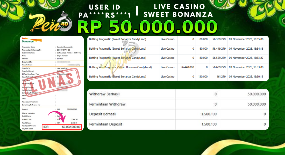 PEN4D $ Kemenangan Jackpot dan Bukti Pembayaran Withdraw Hari Ini 10 NOVEMBER 2025