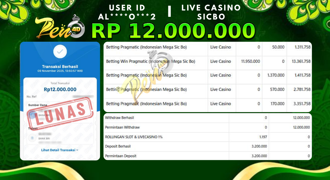 Selamat Datang Di Platform Terkenal Pen4D, Berikut Kami Akan Menampilkan Seluruh Kemenangan Jackpot dan Bukti Pembayaran Withdraw Yang Di Dapatkan Oleh Seluruh Member Setia Kami.